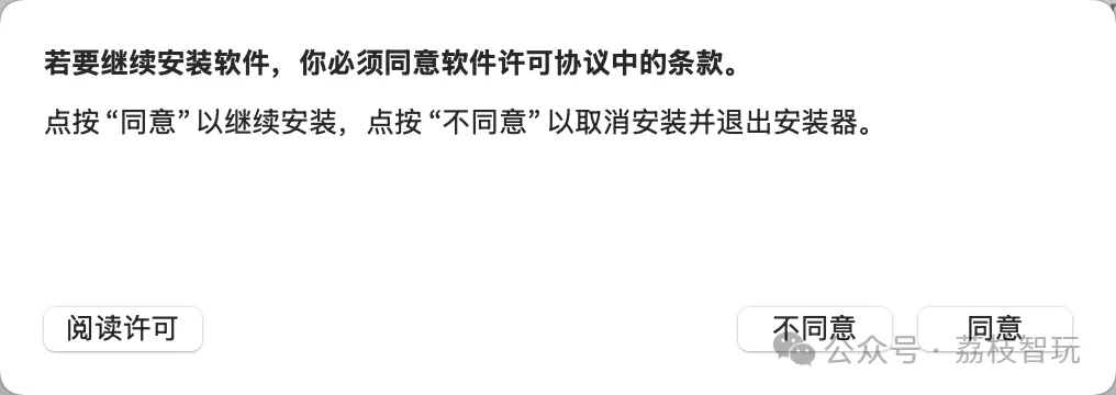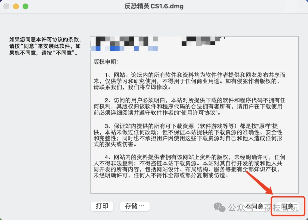 一般打开会出现许可协议条款,我们点击右下角的【同意】。