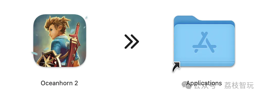 点击左侧的游戏图标,按住鼠标左键不松,拖动至右边applications文件夹上方,松开鼠标左键。(如果打开只有一个软件图标的话,直接将软件图标拖进应用程序文件夹或者其他你想安装到的文件夹内)