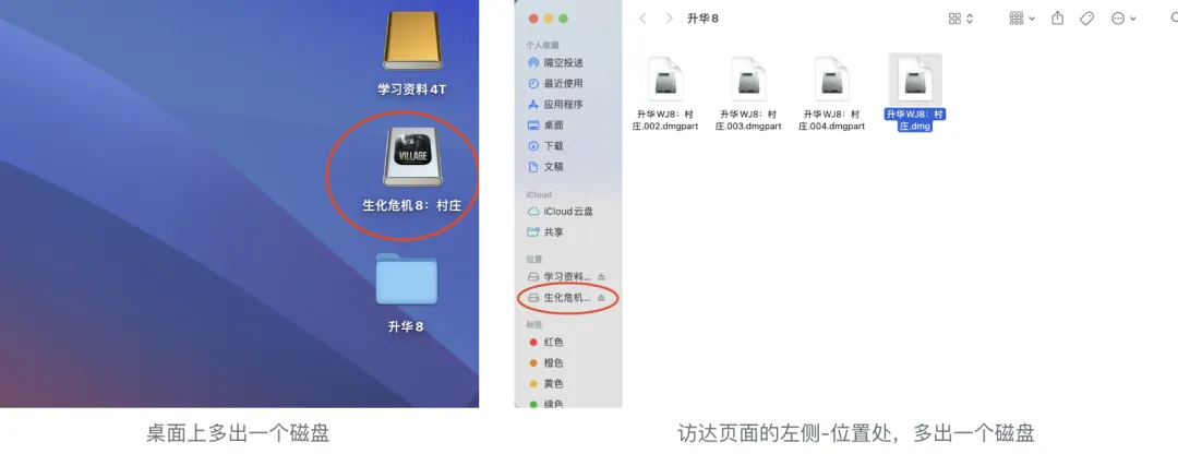 出现这个界面后就代表游戏镜像装载完成,此时查看桌面或者访达页面左侧,多出一个磁盘。打开磁盘,根据游戏安装教程正常安装即可。