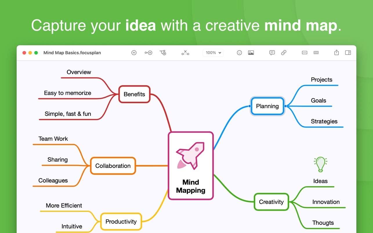 Focusplan 是一款强大且灵活的全能型思维导图和头脑风暴应用程序,每个人都可以轻松使用。它可以帮助您捕捉、发展和分享您的创意,将它们转变成令人惊叹的思维导图。