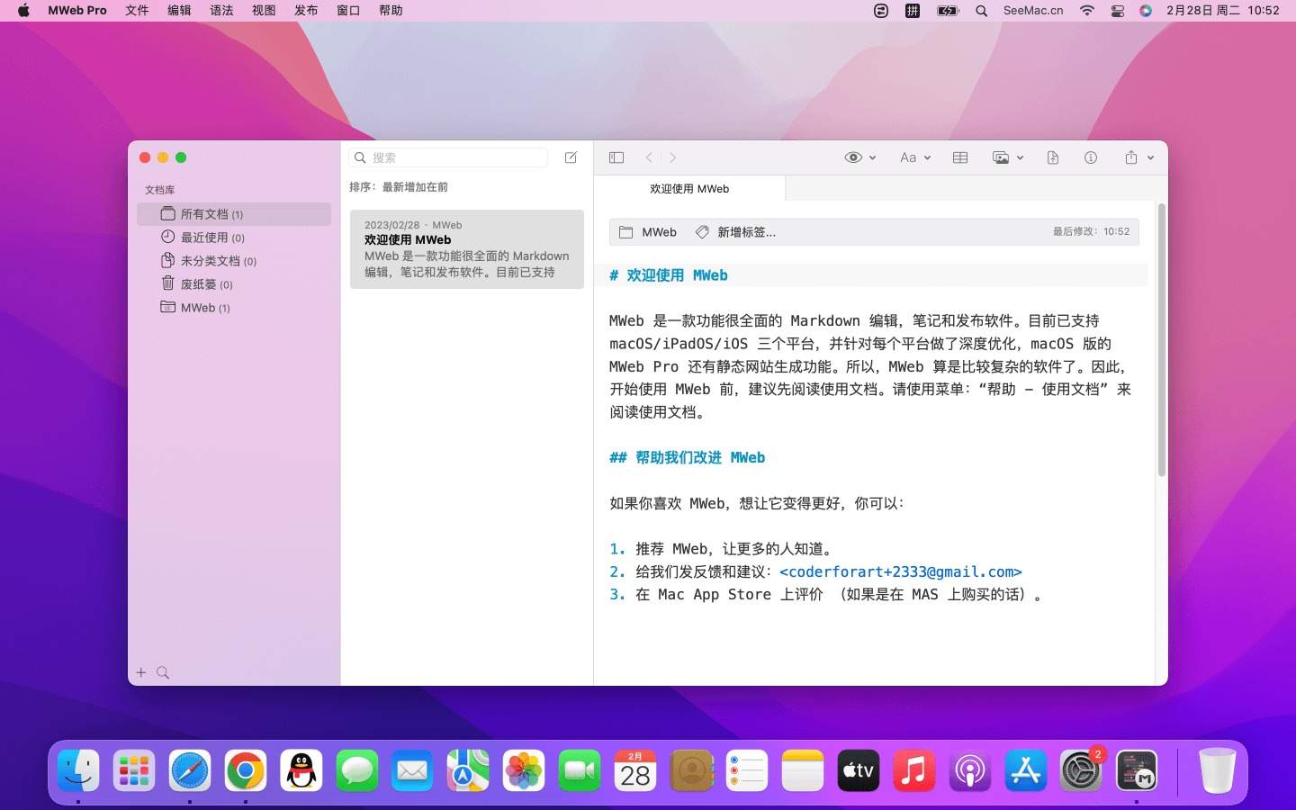 MWeb 是专业的 Markdown 写作、记笔记、静态博客生成软件
