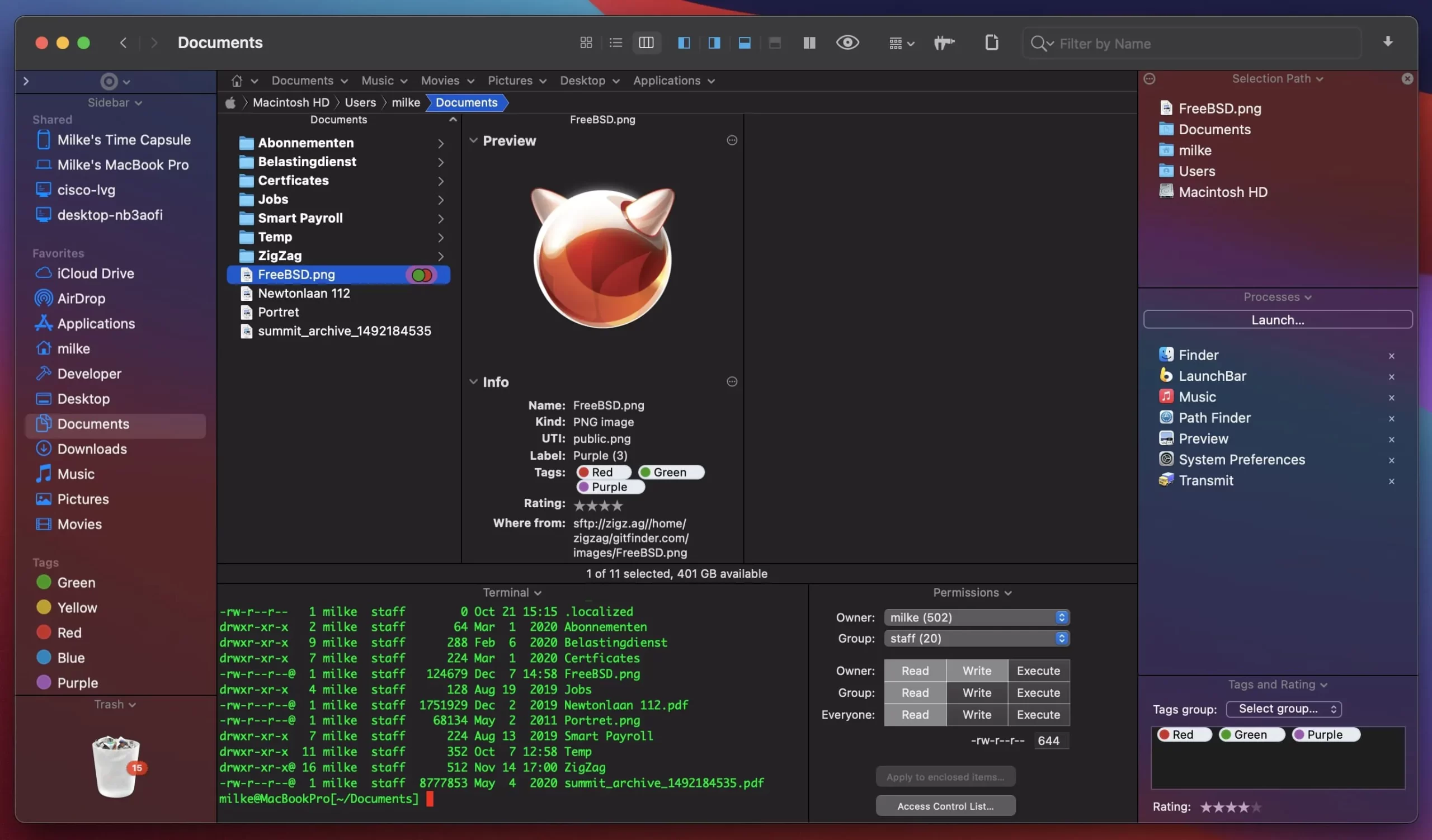 这些功能可让您访问更复杂的Path Finder功能,例如更改文件的属性/标签/评级,启动/终止进程,访问应用程序内的终端控制台,查看最近使用的文档和文件夹以及多得多。