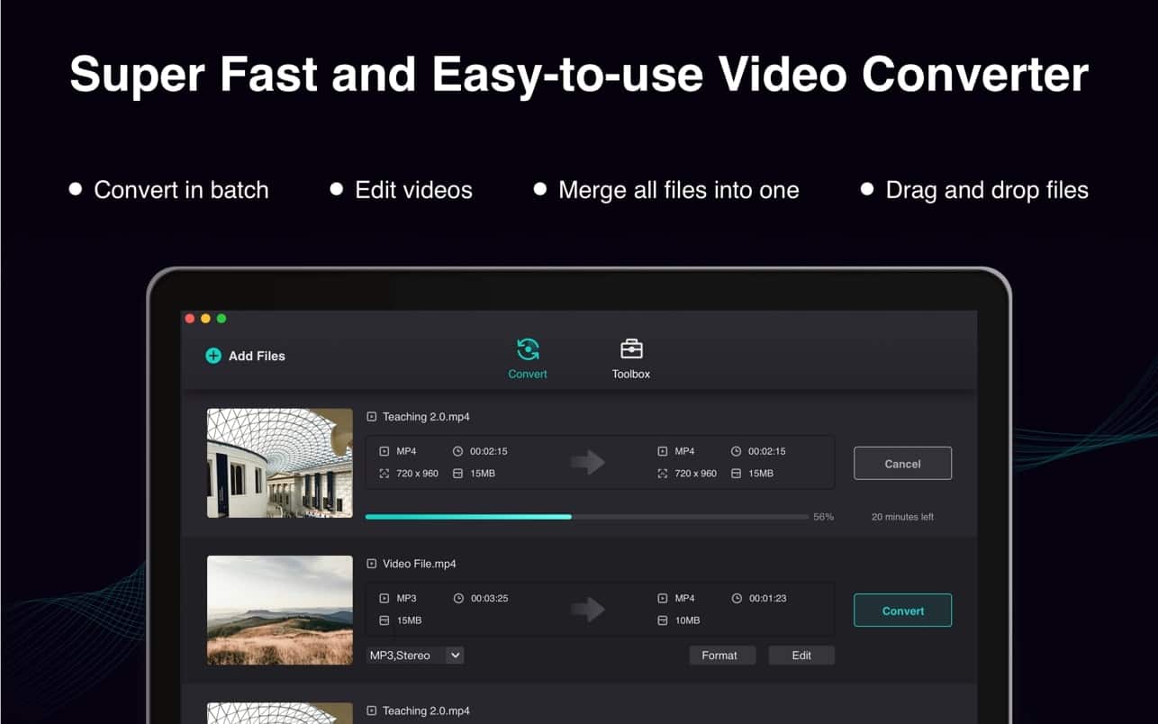 – 您可以转换录制的视频、下载的视频、用摄像机拍摄的视频等任何视频,添加到 Filmage Converter 转换列表中,一键同时转换。让您的视频与所需的视频播放器兼容