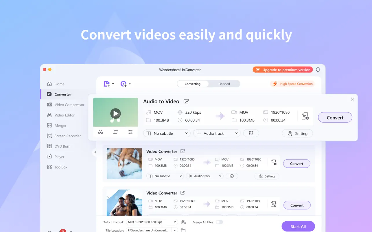 Wondershare UniConverter Ultimate通过便利的功能完成您的转换任务。