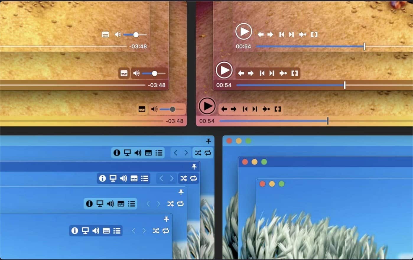 控制器实用且方便,并且仅在鼠标指针接近时才出现。 透明的标题栏和控制器使您可以更专注于您的观看体验。
