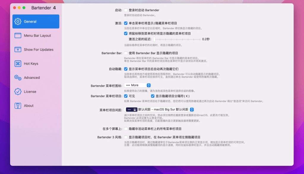 Bartender 4专为使用Big Sur进行macOS的所有重大更改而设计。
