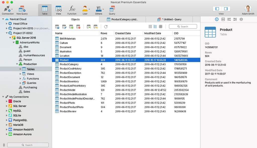 Navicat Essentials用于商业用途。目前,Navicat Essentials可用于MySQL,SQL Server,PostgreSQL,Oracle和SQLite数据库。如果您需要同时管理上述所有数据库服务器,还有 Navicat Premium Essentials,它允许您在单个应用程序中访问多个数据库服务器。