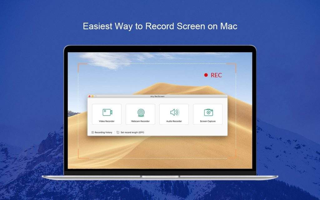Any RecScreen均可为您提供录制Mac所需的一切。 要创建高质量的截屏视频,只需遵循以下四个简单步骤:设置记录区域和音频输入。捕获您的截屏视频。预览并修剪录音。将其保存为所需格式。
