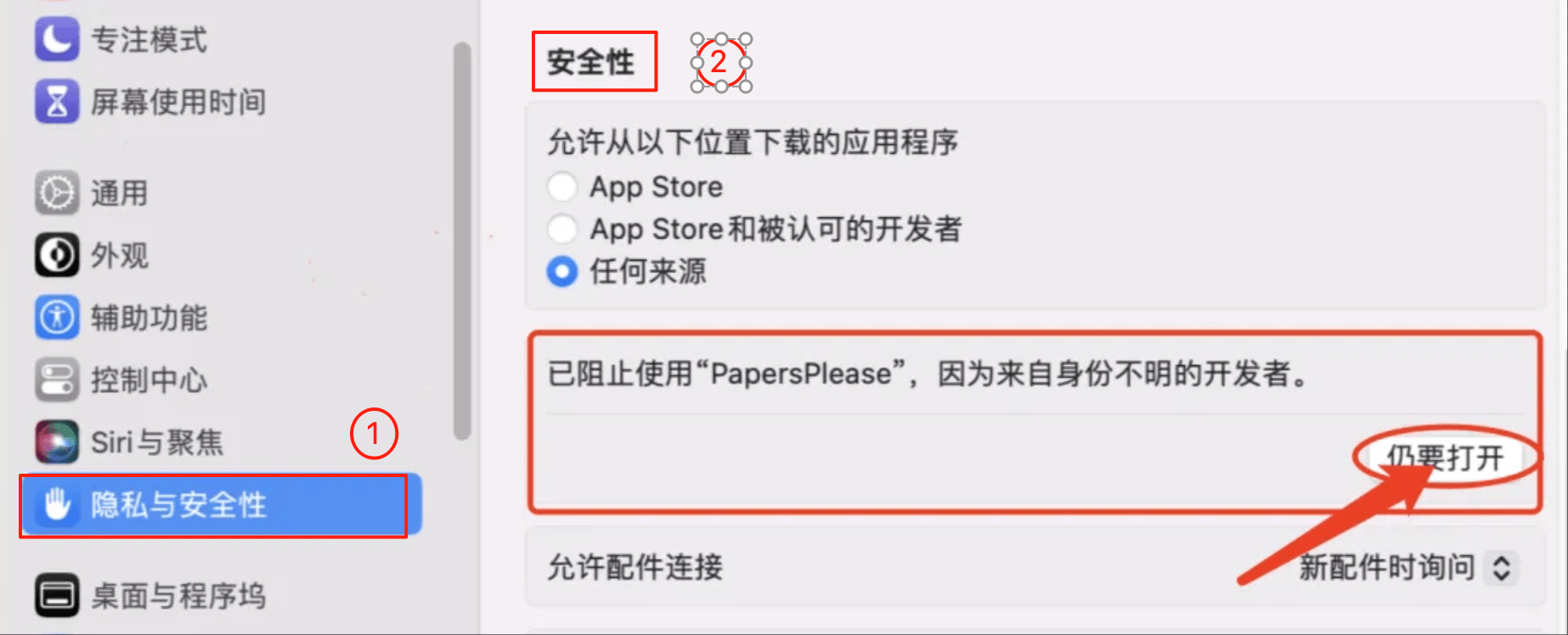 打开「系统设置」- 「隐私与安全性」 – 「安全性」或者「通用」 – 选择「仍要打开」