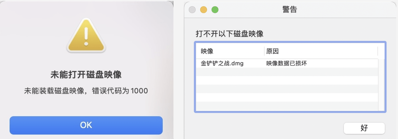遇到 提示“未能打开磁盘映像,错误代码为1000”以及“映像数据已损坏”是因为百度网盘Mac版的BUG导致数据传输丢包(文件下载损坏)一般出现在容量较大的大型文件上或者你将文件直接下载到移动硬盘里的原因。