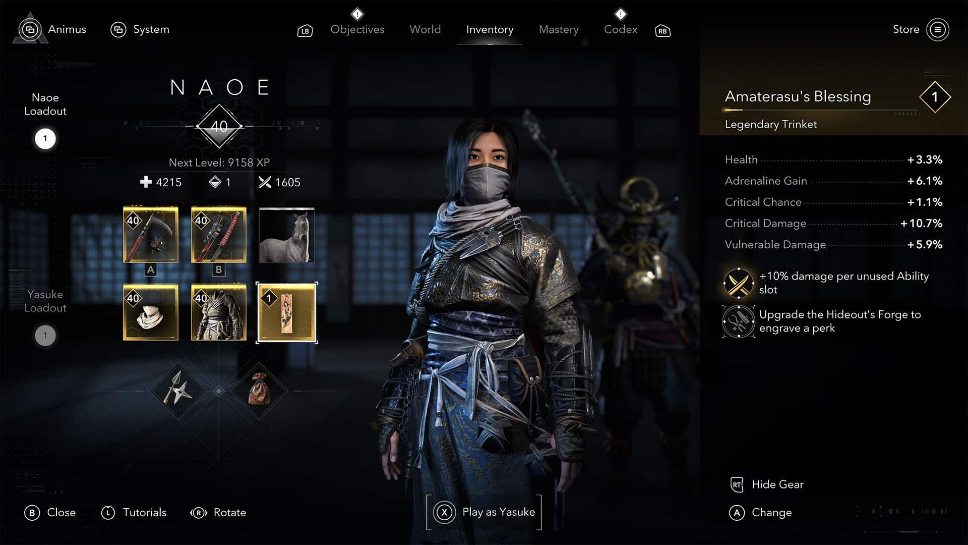 化身忍者刺客奈绪江与传奇武士弥助,掌握他们相辅相成的游戏风格,体验二人跌宕起伏的人生故事。扮演奈绪江,使用潜行技术避免敌人发现,以敏捷的身手击败敌人。扮演弥助,以非凡的精准与力量打倒敌人。