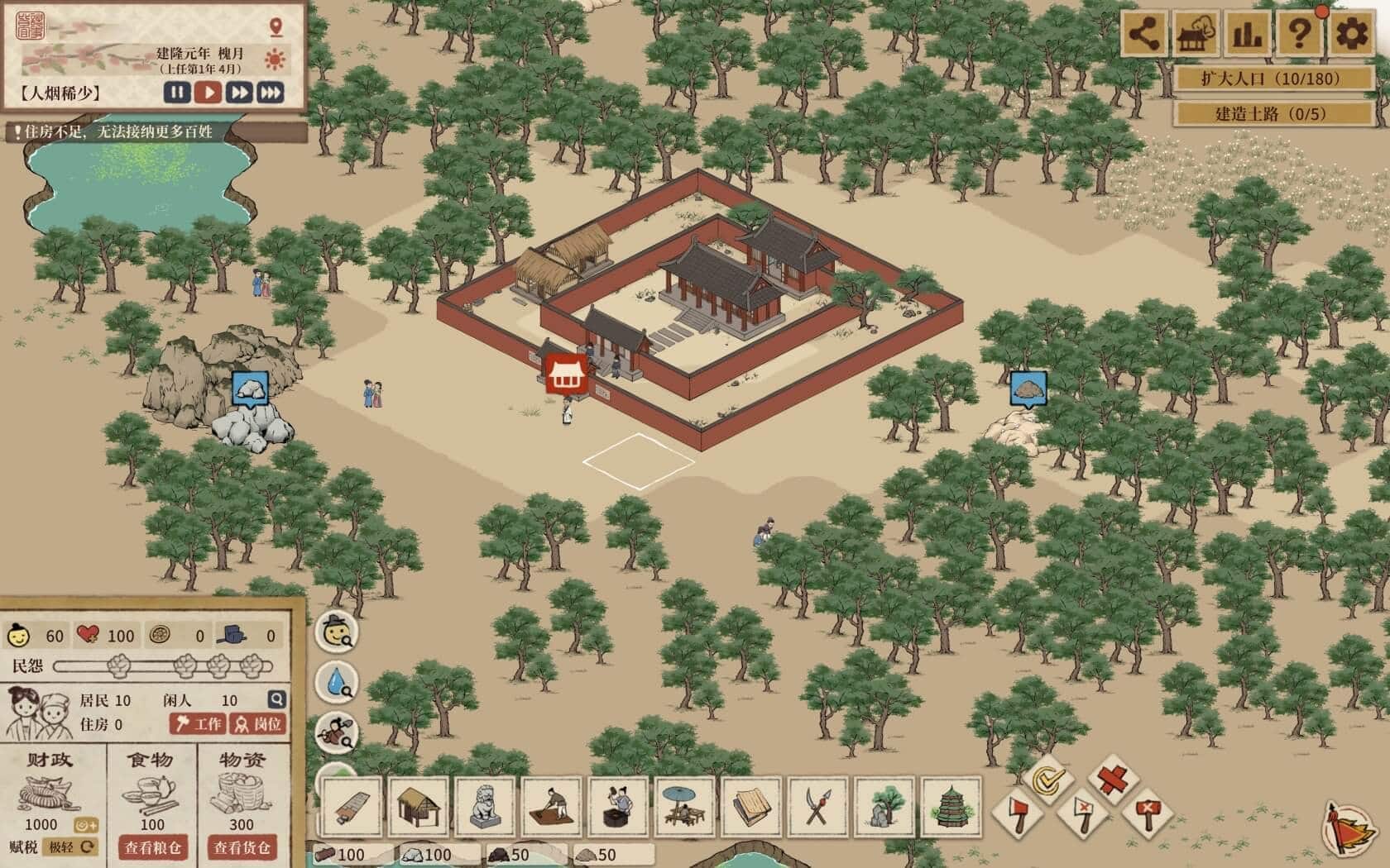 玩习惯了现在的模拟建设游戏,比较不习惯是没有稳定的大宗贸易,不能靠工业生产拿去卖(记得宋代官营产业颇为繁盛),搞”旅游业”赚钱也不能去买东西。另外这个游戏主要是缺钱,物资并不算缺,因此实际上整个游戏中期开始,主要工作就是发展旅游业,建造一个《清明上河图》里面的繁华街市。——所以这游戏会像画里一样,街上做了很多随机生成的小人,结婚的轿子、闲聊的路人大妈、拍拖的公子小姐,坐在空地上品茶的男人、坐在大街上乞讨的老头,显得相当生动。缺点也是现阶段建筑不够多,街市建筑,增强旅游业的装饰品,还有相关活动(比如大戏、进士游街)花样不够多,缺乏“暖风熏得游人醉,直把杭州作汴州”,“多少楼台烟雨中”这种意境。