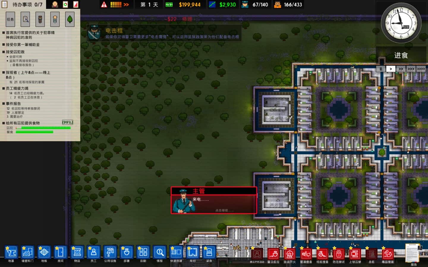 建造并管理一座最高防备监狱。 当清晨的阳光洒落在这片美丽的郊野之地,时钟开始发出滴答滴答的声音。 你得抓紧时间努力建造拘留室,因为成批的最高防备囚犯正被黄色大巴车运送到你将建成的监狱。 当你的工人砌好拘留室的最后一块砖,你不能让他们有片刻休息,因为他们需要立刻开始建造第一间合适的牢房,来关押你即将接管的囚犯。 一旦工人都有了各自休息的地方,有趣的事才真正开始。你将需要建造食堂、医务室和保安室,噢,别忘了还要建厕所,否则将脏乱不堪。不过,要不要建一个锻炼场?或者单人禁闭室?或者死囚室?