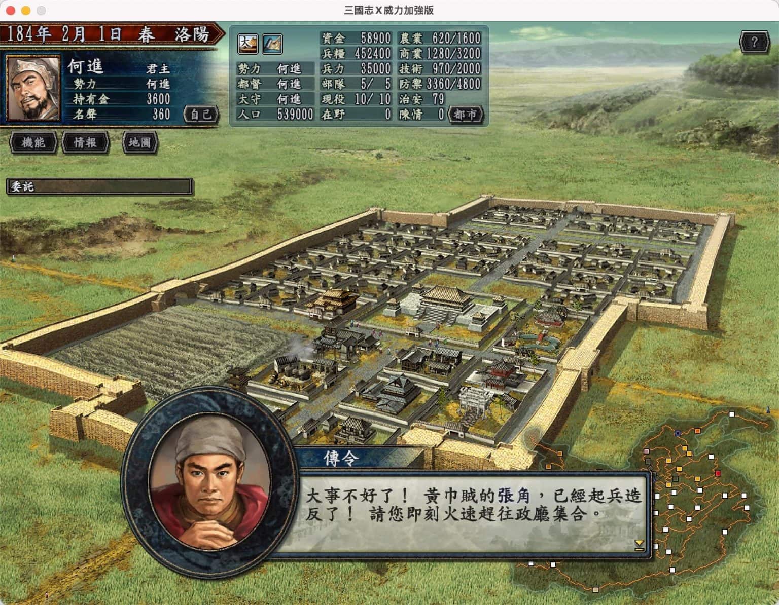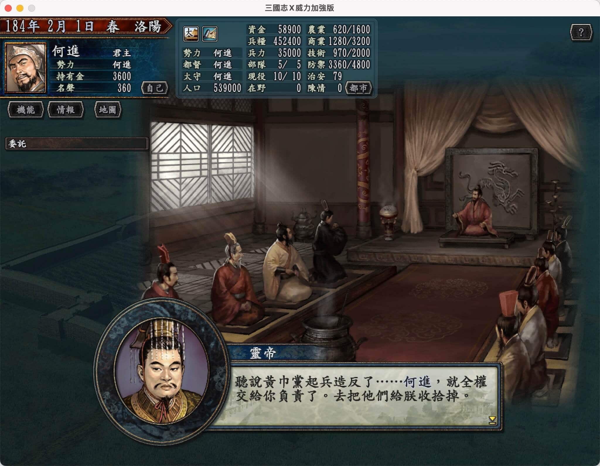 《三国志10威力加强版》是一款由光荣公司开发并在Mac平台上发布的历史模拟游戏。游戏以三国时期为背景,玩家将扮演一位领主,在这个动荡的时代中,通过政治、外交和战争等手段争夺权力,最终统一天下。这款游戏是《三国志》系列中备受玩家喜爱的一款,以其深度的游戏系统和高度还原的历史背景而著称。游戏新增了英雄集结剧本,并且在游戏模式中增加了战史、竞赛、专家等可选模式,以及人际关系中增加了结婚、后代养成等元素。与原版相同,游戏以中国东汉末年的三国时期为总体背景,共配有8个风格迥异的剧本,从184年的“黄巾之乱”到225年的“讨伐南蛮”之间,史实的剧本一共有7个,新增加武将汇萃的假想剧本“英雄集结”一共8个剧本。