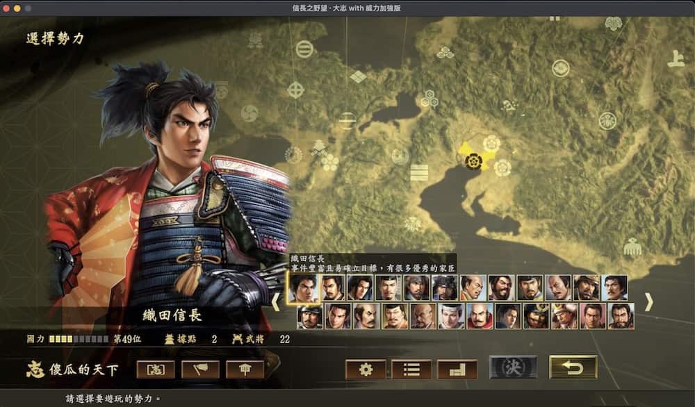 《信长之野望大志威力加强版》是Koei Tecmo的最新作,以日本战国时代为背景的策略游戏,本作让玩家能够扮演织田家,武田家和上杉家等各路大名并以统一日本为奋战目标。本作在系统和立绘上做出了大规模翻新,合战系统也做出了巨大的改动,让游戏变得更具策略性,登场武将会超过2000人!创下了《信长之野望》系列作的纪录。