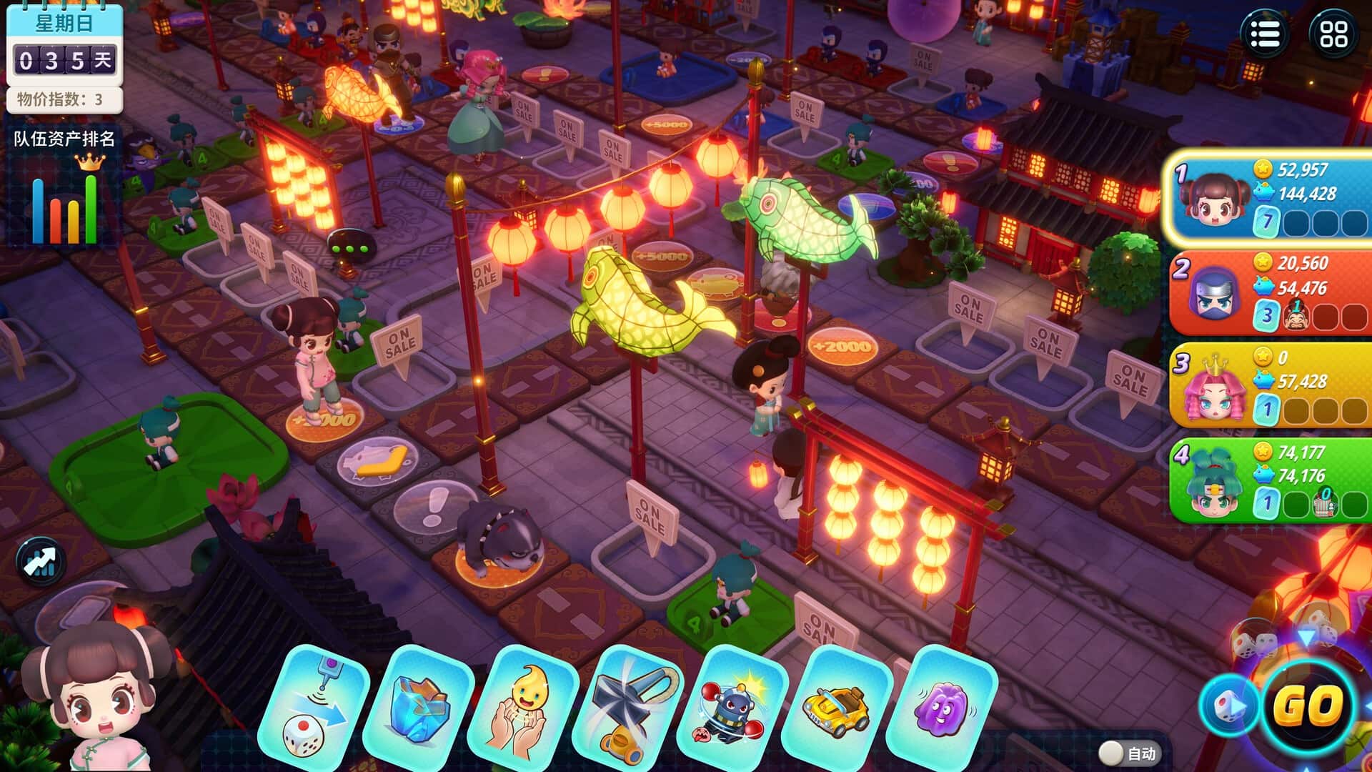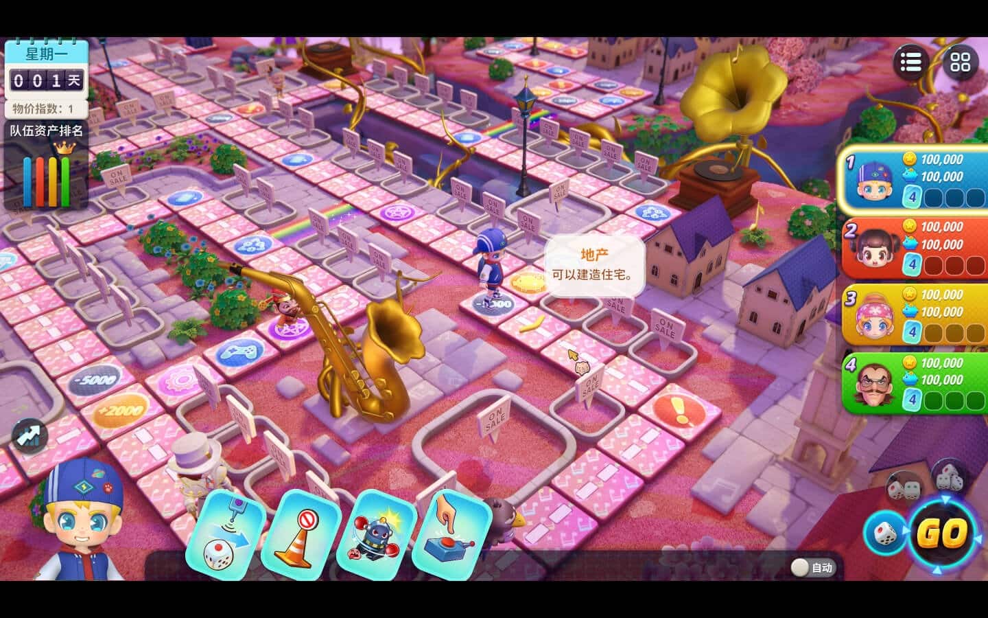 比赛中,当你路过银行时,可以自由调整现金和存款的比例。现金是投资地产、购买卡片不可缺少的,存款则可以在每月银行结算时收获一笔不少的利息。如果正在进行的是本地游戏,你还可以使用存款投资股票,低买高卖、适时调仓,赚取一笔额外的金钱收益。