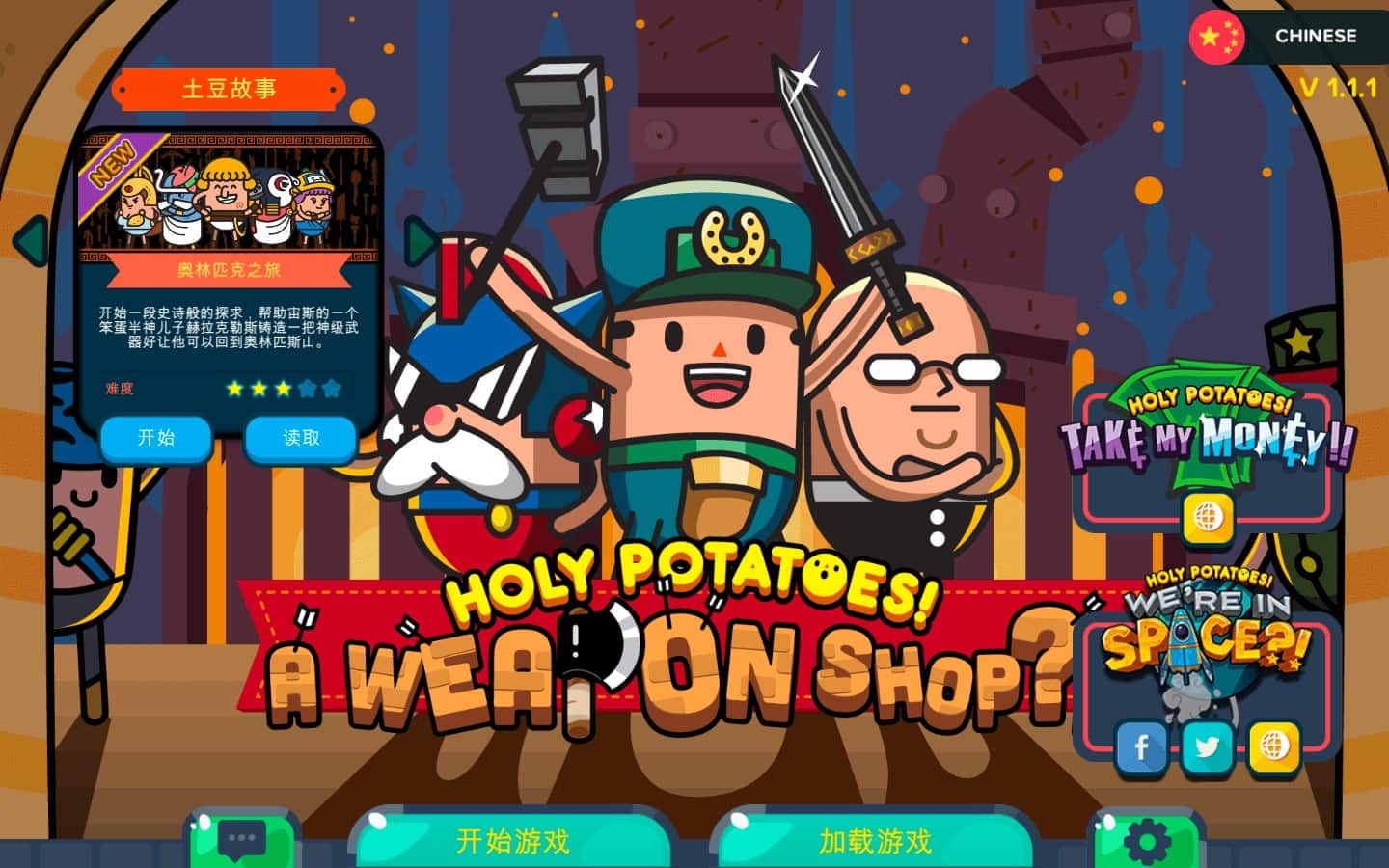 控制土豆铁匠,制造武器并出售给英雄。你有70多个土豆英雄和200种不同的武器可供你使用!扩大您的业务:使用20个疯狂的地方!指挥30个古怪的土豆铁匠,发现10个传奇的流行文化英雄……还有一只土豆狗!创作者的灵感来源是Game Dev Story、Weapon Shop De Omasse和Recettear: An Item Shop’s Tale。圣土豆游戏!Магазин武器?!将给这种新流派的粉丝带来难忘的新鲜印象。游戏的音乐由传奇作曲家Kimura Masahiko创作,他参与了Genso Suikoden和Castlevania系列游戏。